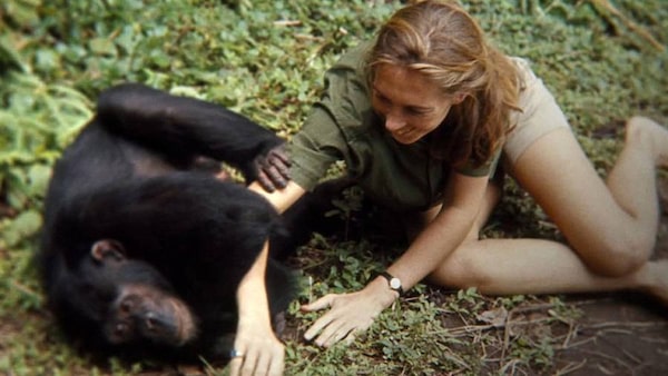 Jane is Brett Morgen's gorgeous, convincing new documentary on Jane Goodall, the one-time ape watcher and current UN messenger of peace. Her life is told in an eloquent if overfancy way, using vivid, recently unearthed footage from Goodall's earliest National Geographic years in Gombe. Graceful narration comes from the 83-year-old primatologist herself. Goodall speaks of her "magical invitation" to Africa, which is where we watch her snoop around the forest as a telegenic explorer in cargo shorts, patiently earning the trust of animals who, she discovered, had characteristics previously thought to be human only. Chimpanzees were people, too! They were banana stealers, capable of ugly violence and incredible affection. As a young woman, Goodall had no domestic aspirations. Observing a mother chimp with child stirred her instinct in that regard. Director Morgen is a bit messy with his timeline and his relentless insect photography really bugged me. But the biggest nit to pick is with Philip Glass's intrusive, crazily grandiose score. The film ends with chimp factions at war and Goodall shocked at their capability for brutality. For humans, the evolution isn't over.