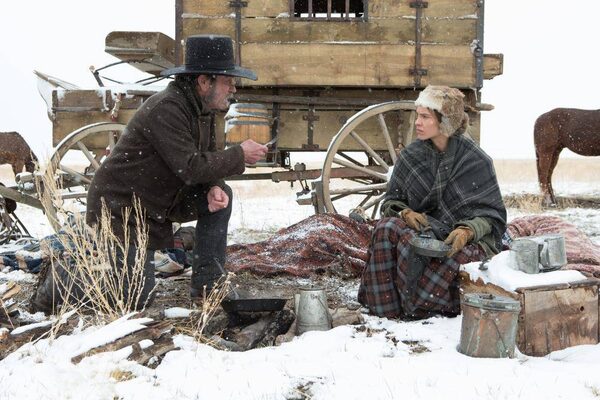 Jones, directing his first movie since the bleakly effective, Peckinpah-flavoured 2005 neo-western The Three Burials of Melquiades Estrada, plays George Briggs, a crusty, unreliable claim jumper required to repay a life-saving debt to the "plain as an old tin pail" prairie spinster Mary Bee Cuddy (Hilary Swank). Once she has unsuspended him from the rope from which he has been hanged for squatting in a dead man's hovel, Mary Bee enlists the drunken old coot for a mission she's taken on because no one else in this sparsely populated corner of the frontier will: the safe carriage of three women (Grace Gummer, Miranda Otto, Sonja Richter) to haven in Iowa, from where they'll be returned to family back east.