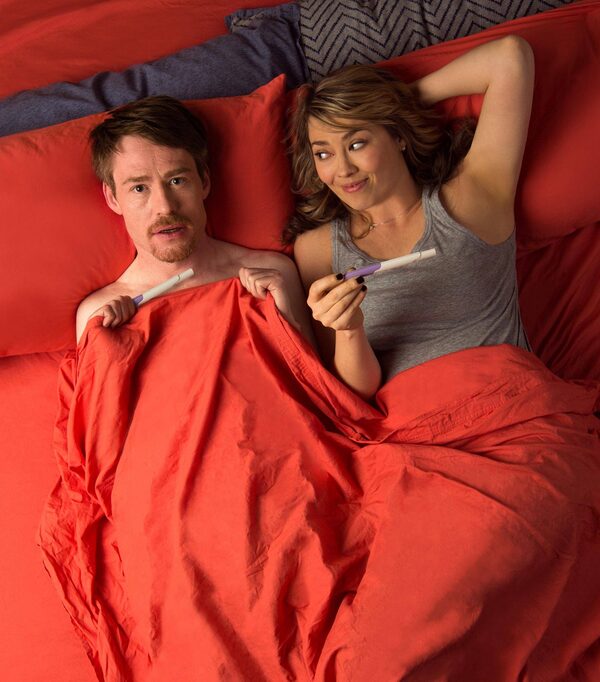 When Adam, played by Gavin Crawford, helps his nutty ex-girlfriend Miriam, played by Naomi Snieckus, artificially inseminate, it turns into a one-night stand and they both wind up pregnant. You see, Adam has been transitioning to living as a man.