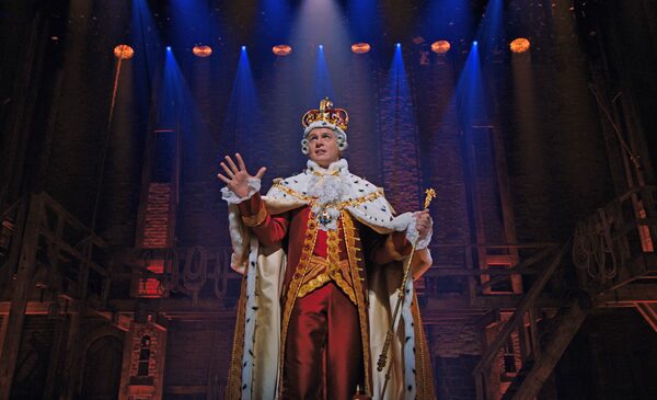 Jonathan Groff as King George. Disney+’s Hamilton is edited together from three June 2016 performances at New York’s Richard Rodgers Theatre and features the original cast at the height of their powers.Courtesy of Disney+