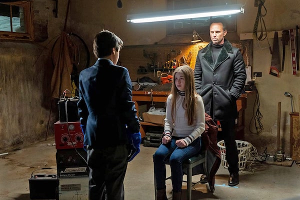 Chance Hurstfield, Ellison Grier Butler and Walton Goggins in Fatman.Courtesy of VVS
