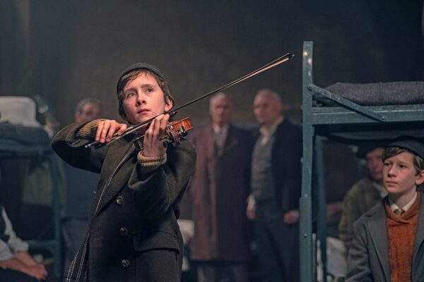 Luke Doyle as Dovidl playing the violin in an air-raid shelter in The Song of Names.Sabrina Lantos/Courtesy of Elevation