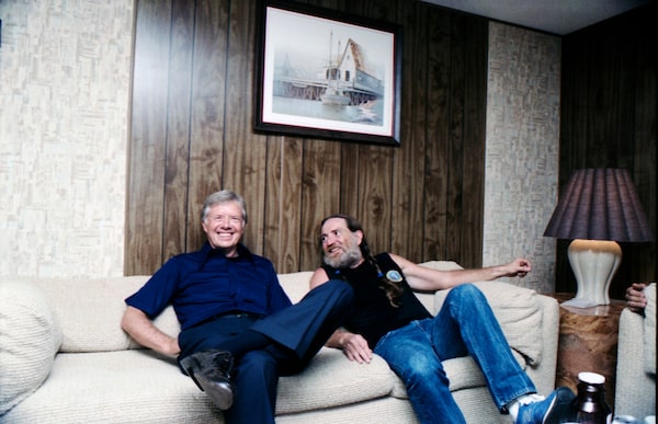 Carter sits with Willie Nelson ahead of a fundraiser for his re-election campaign on Sept. 13, 1980.Courtesy The Jimmy Carter Presidential Library / Films We Like