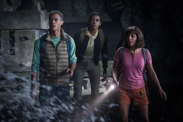 Not that a lick of this matters to Dora’s first big-screen adventure, Dora and the Lost City of Gold. A would-be adventure that pushes Dora (Isabela Moner) into high school just long enough to get a gaggle of one-note friends to tag along as she travels through the jungle to rescue her parents, the movie trades learning about … well, anything really, for a sloppily vague consideration of the value of friends and nodding at the value of Dora’s relentless positivity while also denigrating it as the butt of almost everything that constitutes humour.