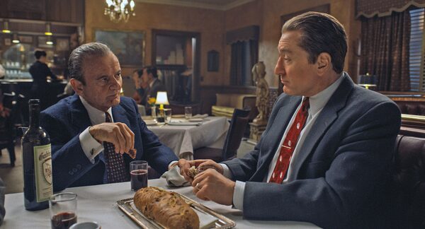 While every performance in The Irishman is exceptional, it is amusing that De Niro, ostensibly the title character, gets crowded out by nearly everyone else – Pacino, for starters. The Irishman marks only the third time De Niro and Pacino, the two heavyweights of American acting, have ever shared the screen, and Scorsese exploits the occasion for all it’s worth. Taking a match to the deliberately muted combustion of Michael Mann’s coffee-shop meetup in 1995′s Heat, The Irishman slams the two performers up against one another like it’s the most naturally incendiary pairing in the world. Which it is. (I believe that we, as a human race, have collectively decided to never speak about De Niro and Pacino’s other team-up, 2008′s Righteous Kill.)