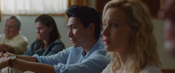 The retreat gives off the impression of a relationship hospice, where wellness efforts make plain the cavities within these marriages, although some swear by its methodology. Another couple, Pat (Chris Pang) and Carol (Sarah Gadon), are regulars, polishing their marriage with cultish therapy exercises: pummeling a pillow while the group stands by, talking to mirrors held up by one’s partner, staging tableaux vivant to imagine each participant in a casket. The couples coo and nod through the exercises, while a combined thrill and unease seems to wash over Judith, who gets closer to Pat as she finds comfort in his similar experiences growing up Asian Australian.