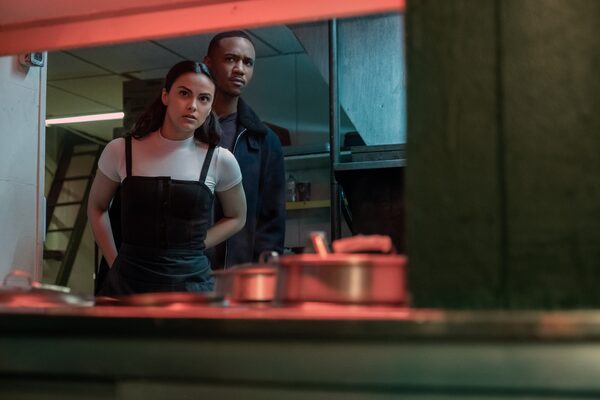 Mendes and Jessie T. Usher play a young couple who stumble into a plot that feels like a dollar-store Knives Out, writes Barry Hertz.Eric Milner/NETFLIX