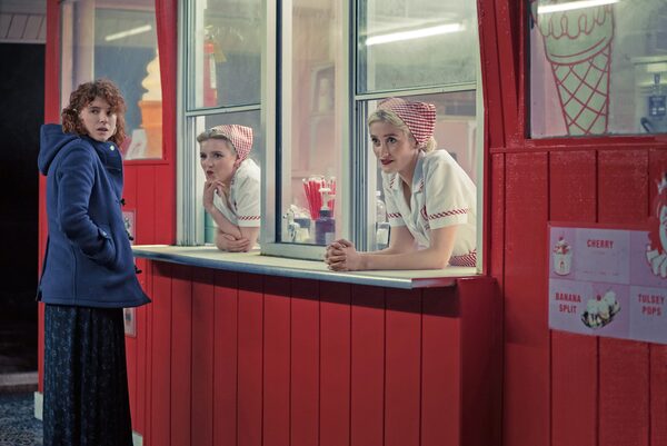 This playfulness intensifies once the couple arrive at their destination, and the question of who is telling whose story bubbles up. Certain slips in the narrative – characters change clothes, names, accents and ages – coincide with breaks in visual perspective. At one point, we’re seeing the story through Jake’s eyes. Then the Girlfriend’s. Or is her name Lucy? Yvonne? The aesthetic hiccups are halfway between subtle and jackhammer obvious, but it works.