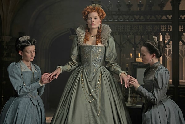 Grace Molony, left, as Dorothy Stafford, Margot Robbie stars as Queen Elizabeth I and Georgia Burnell, right, as Kate Carey in Mary Queen of Scots.Parisa Tag/Focus Features
