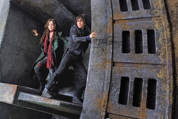Hera Hilmar, left, as Hester Shaw and Robert Sheehan as Tom Natsworthy in Mortal Engines.Universal Pictures