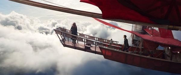 Hera Hilmar and Robert Sheehan aboard the airship Jenny Haniver in Mortal Engines.Universal Pictures