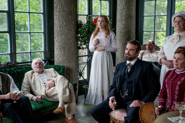 Left to right: Brian Dennehy as Sorin, Saoirse Ronan as Nina, Jon Tenney as Doctor Dorn, Glenn Fleshler as Shamrayev, Barbara Tirrell as Olga and Mare Winningham as Polina in The Seagull.Abbott Genser/Courtesy of Sony Pictures Classics