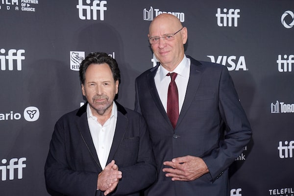 Barry Avrich and Noam Tibon attend the premiere of "The Road Between Us: The Ultimate Rescue" during the 2025 Toronto International Film Festival on Sept. 10 in Toronto.Shawn Goldberg/Getty Images