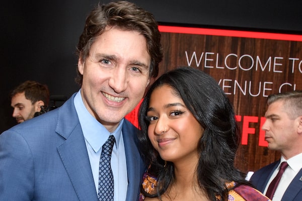 Prime Minister Justin Trudeau and Canadian actor Maitreyi Ramakrishnan attend the Netflix Canada office opening reception in Toronto on April 4.George Pimentel/Netflix