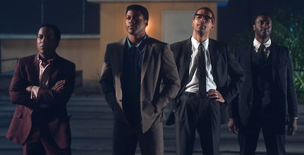 From left: Leslie Odom Jr. as Sam Cooke, Eli Goree as Cassius Clay, Kingsley Ben-Adir as Malcolm X and Aldis Hodge as Jim Brown star in One Night in Miami.Courtesy of Amazon Studios