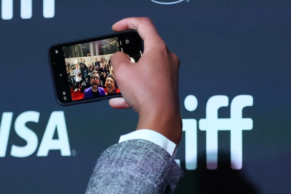 Directors Carlos Lopez Estrada and Zac Manuel take a selfie during the world premiere of 'Lil Nas X: Long Live Montero' at the Toronto International Film Festival on Sept. 9.Carlos Osorio/Reuters