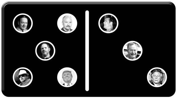 Bill O'Reilly: The Fox News commentator's sexual-harassment history had been widely reported on before the Weinstein story broke. In April, a New York Times report that he had reached settlements with five different women led to his ouster from the network. But in October, the story gained new life when the Times reported on a sixth settlement for an even bigger sum – $32-million – with legal analyst Lis Wiehl, and that Fox had known about the settlement when they renewed his show The O'Reilly Factor a month later.