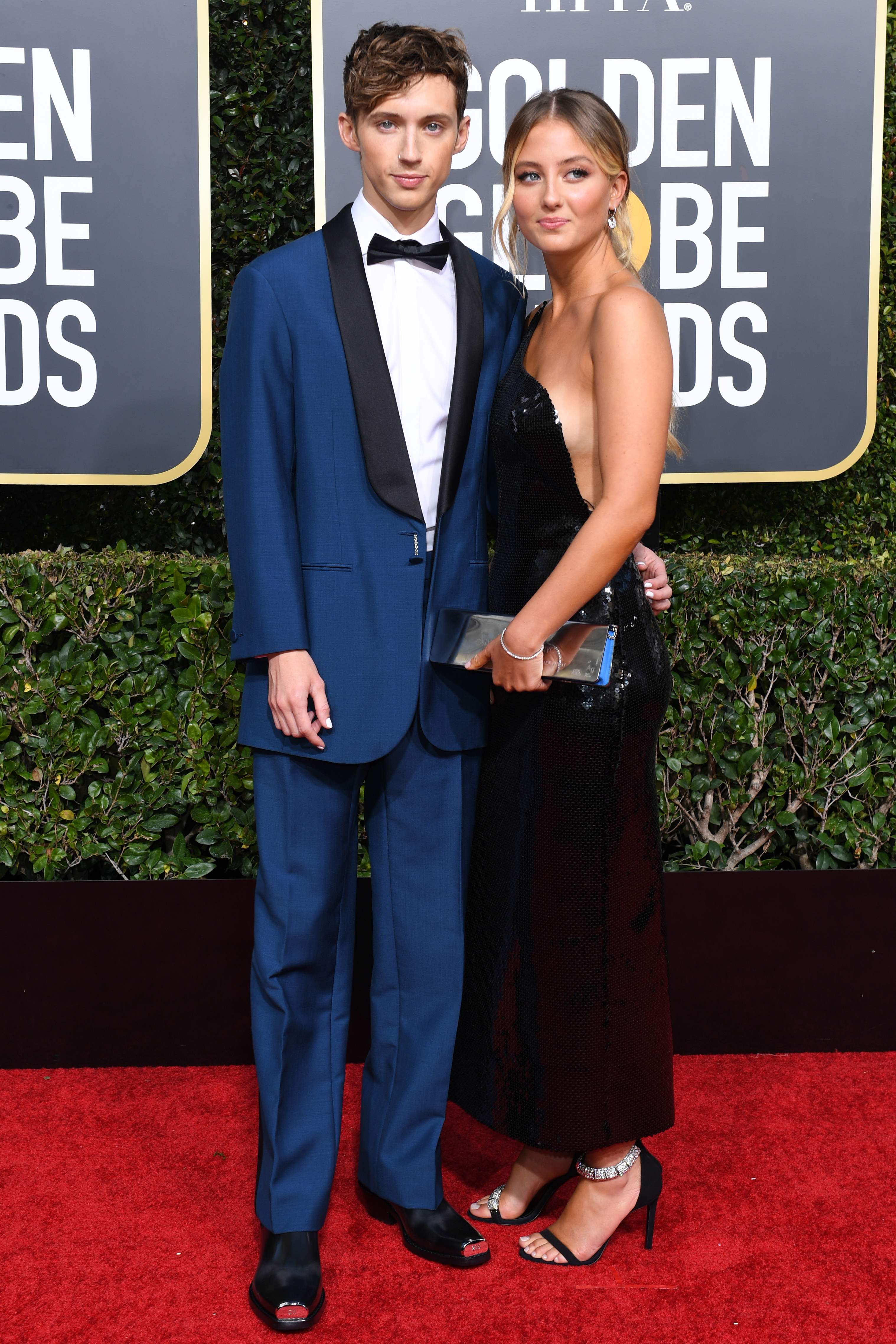 Australian/South African singer/songwriter Troye Sivan (L) arrives with a guest for the 76th annual Golden Globe Awards.VALERIE MACON/AFP/Getty Images