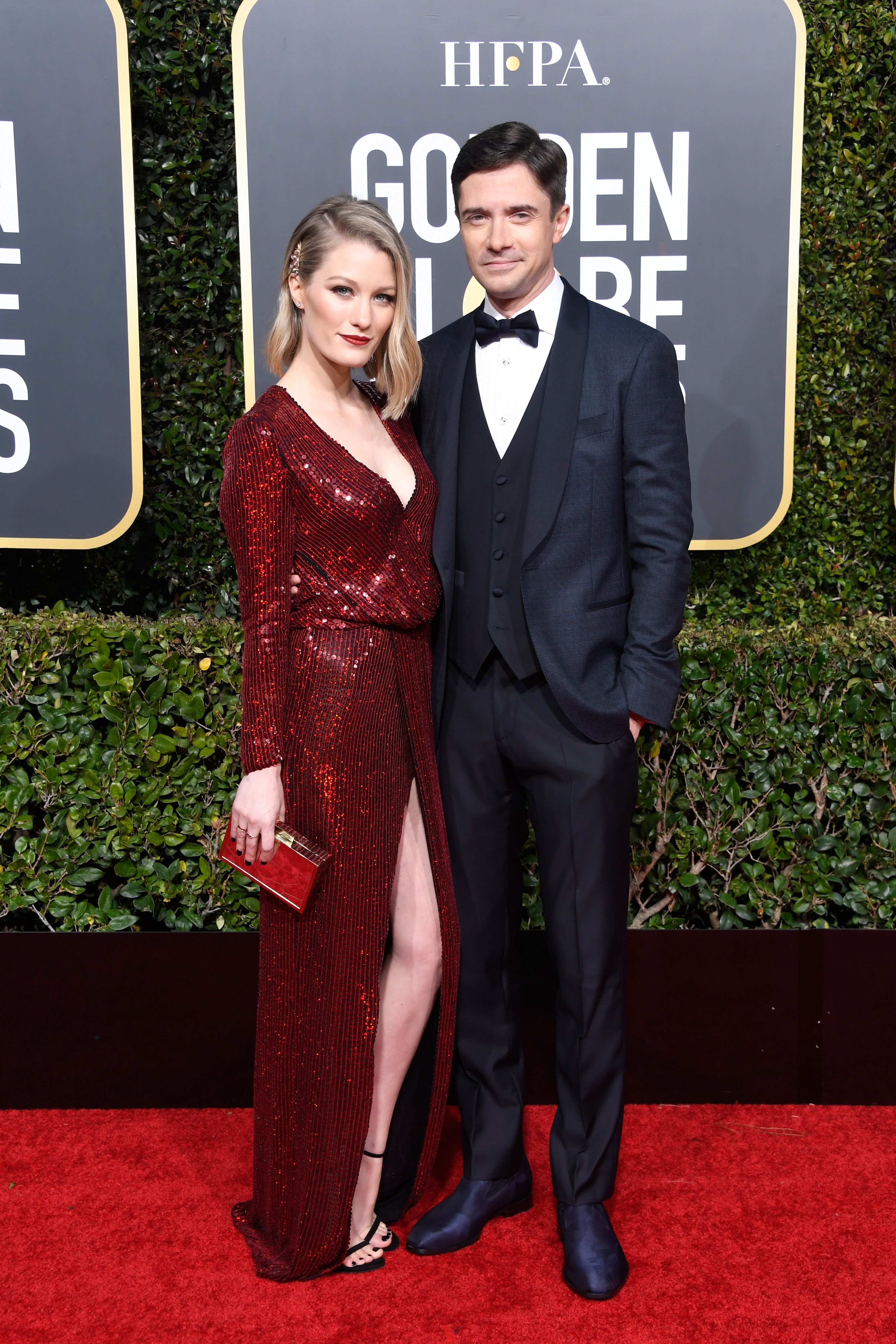 Ashley Hinshaw (L) and Topher Grace attend the 76th Annual Golden Globe Awards.Frazer Harrison/Getty Images