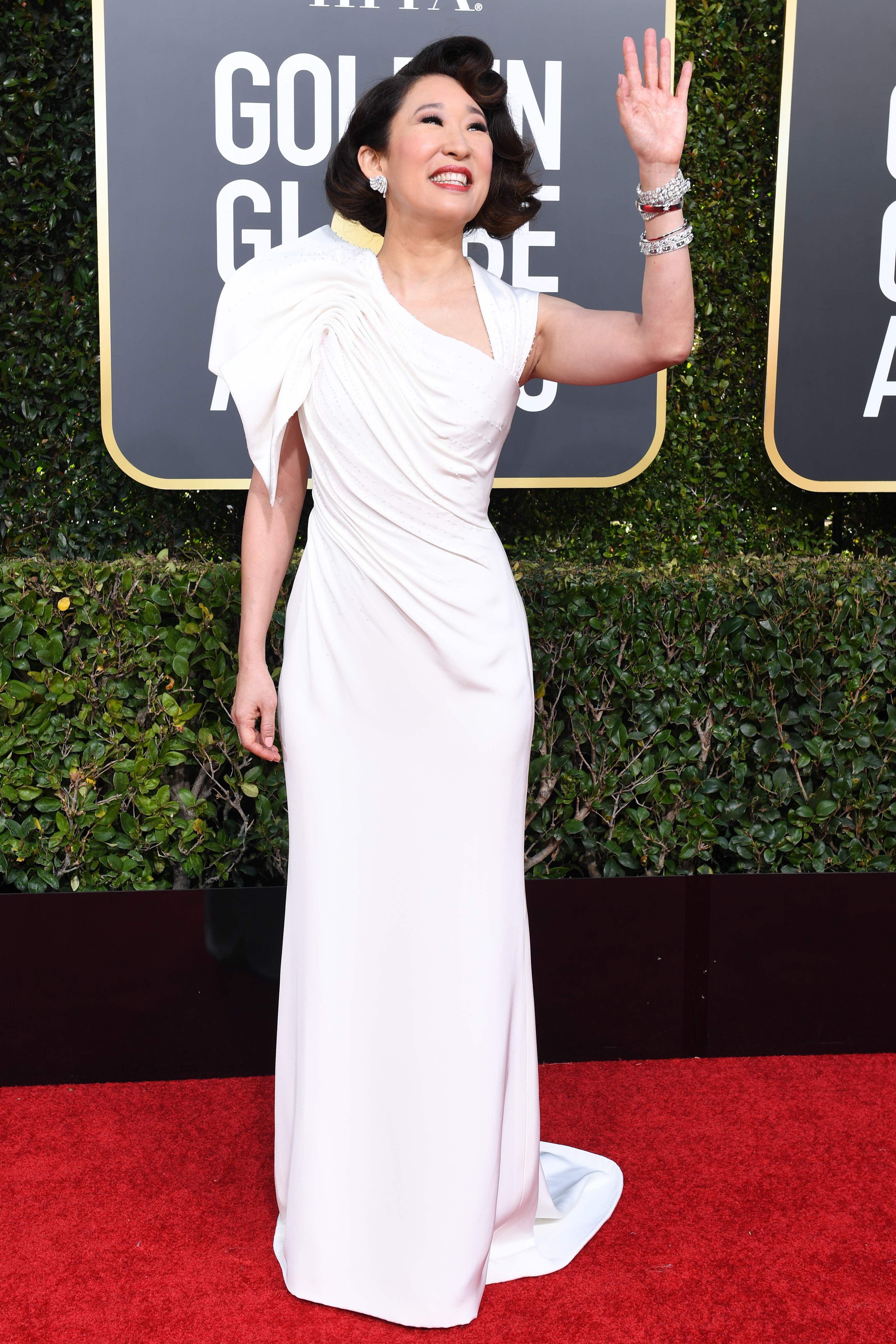 Host and Best Performance by an Actress in a Television Series Drama "for Killing Eve" nominee Sandra Oh arrives.VALERIE MACON/AFP/Getty Images