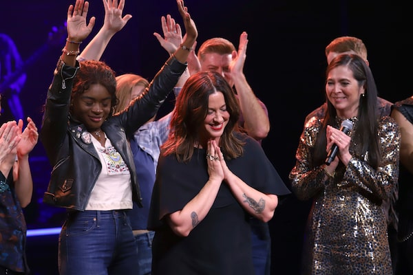 Alanis Morissette – seen at centre during the 'Jagged Little Pill' Broadway opening night curtain call at the Broadhurst Theatre on Dec. 5, 2019, in New York – hits the road with a Jagged Little Pill 25-year anniversary tour in 2020.Greg Allen/The Associated Press