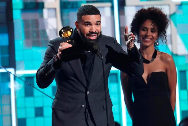 Drake accepts the award for best rap song for 'God's Plan' at the 61st annual Grammy Awards, in Los Angeles, Calif., on Feb. 10, 2019.The Canadian Press