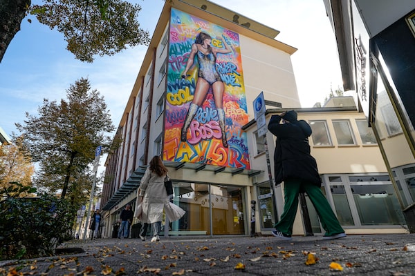 A mural of Taylor Swift is sprayed on a house in the city of Gelsenkirchen, Germany, on Oct. 16. Tickets for Swift's Canadian concerts are 225-per-cent higher than her European dates.Martin Meissner/The Associated Press