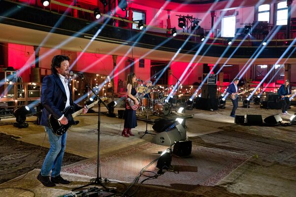 After a testimonial by rock legends Geddy Lee and Alex Lifeson of Rush, Gordon Lightfoot introduced the Hip’s pre-taped performance at Toronto’s empty Massey Hall, where singer-songwriter Leslie Feist fronted the reunited band in place of the late Gord Downie. On a stately rendition of the group’s It’s A Good Life If You Don’t Weaken, Feist sang “Let’s get friendship right.”