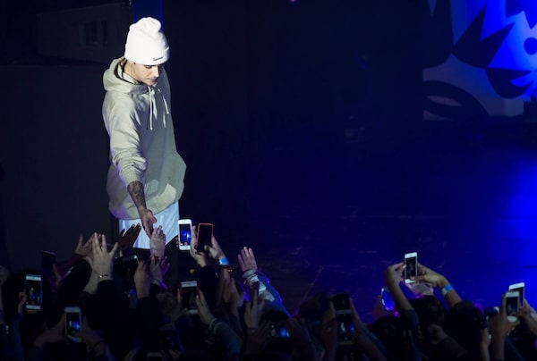 Singer Justin Bieber performs for a sold out crowd at the Danforth Music Hall in Toronto.Kevin Van Paassen/The Globe and Mail