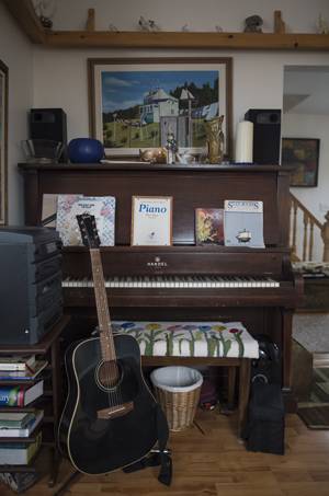 A guitar and piano inside June Jarvis’s home. She remained close with Stan Rogers throughout his life.