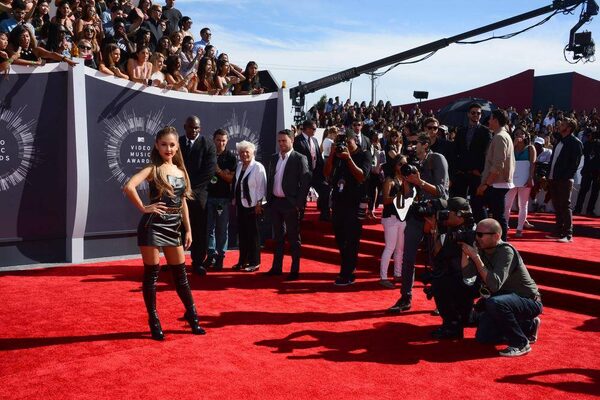Ariana Grande arrives at the MTV Video Music Awards at The Forum on Sunday, Aug. 24, 2014, in Inglewood, Calif.Jordan Strauss