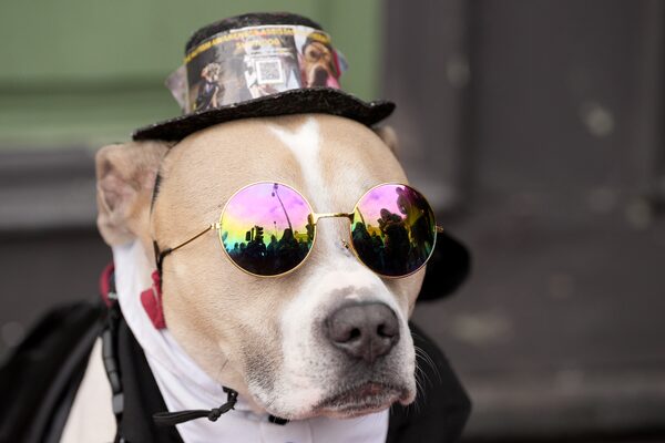 Bruce the dog who has changed his name today to 'doggy osbourne' waits to pay his respects.Christopher Furlong/Getty Images