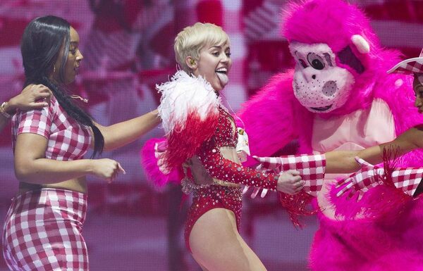 Pop star Miley Cyrus preforms on her Bangerz World Tour during its first show in Vancouver, British Columbia on February 14, 2014.Stephen Brashear/The Associated Press