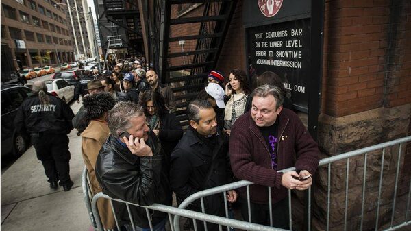 Scott Morin (R) and Rob Rosenitsch (L) stand in front of a line up at Massey Hall for Prince tickets as rumours swirl he will be playing a show in Toronto on Tuesday, Nov. 4.Mark Blinch/The Globe and Mail