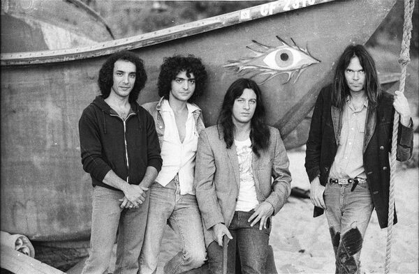 Neil Young with Crazy Horse members Billy Talbot and Frank (Pancho) Sampedro in 1976.Gijsbert Hanekroot