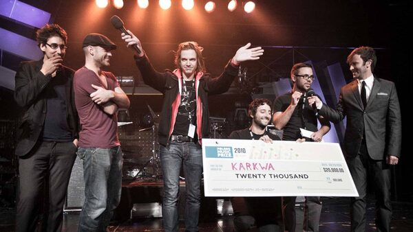 Karkwa celebrates winning the 2010 Polaris Music Prize: The amount on the cheque goes up to $30,000 this year.