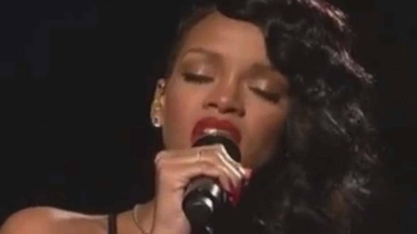 Screen grab from video of Rihanna singing “Stay” on Saturday Night Live
