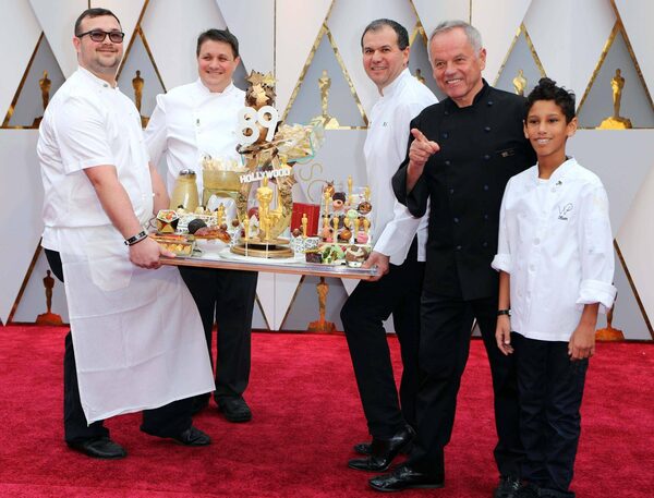 Celebrity chef Wolfgang Puck shows off his creations on the red carpet.MIKE BLAKE/Reuters