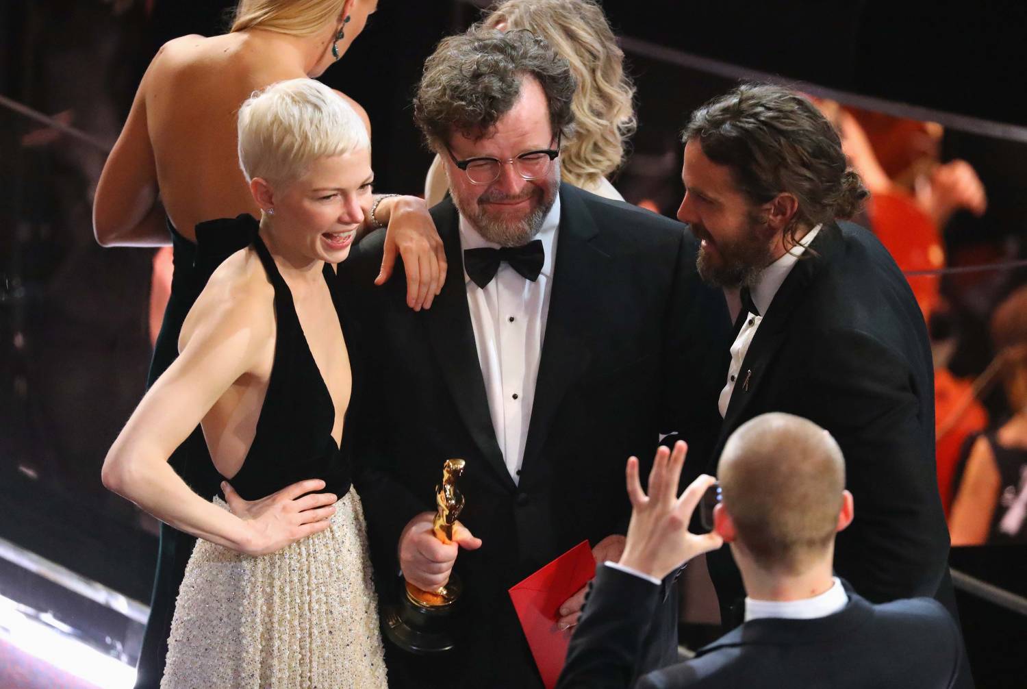 Michelle Williams, Best Original Screenplay winner Kenneth Lonergan for Manchester by the Sea and Casey Affleck pose for a photo.Lucy Nicholson/Reuters