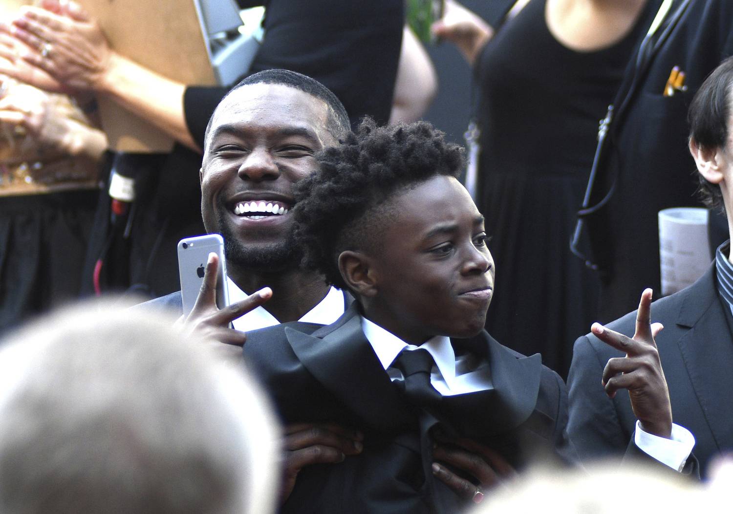 Trevante Rhodes, left, and Alex R. Hibbert, actors in Moonlight are shown at the Oscars.Powers Imagery