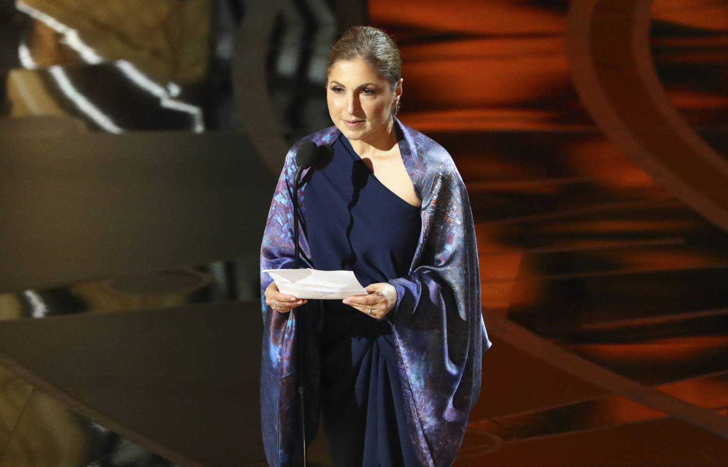 Anousheh Ansari reads a statement for Asghar Farhadi after his film "The Salesman" won best foreign language film. The Iranian director boycotted the ceremony after the US introduced its travel ban against Iran.Patrick T. Fallon/The New York Times