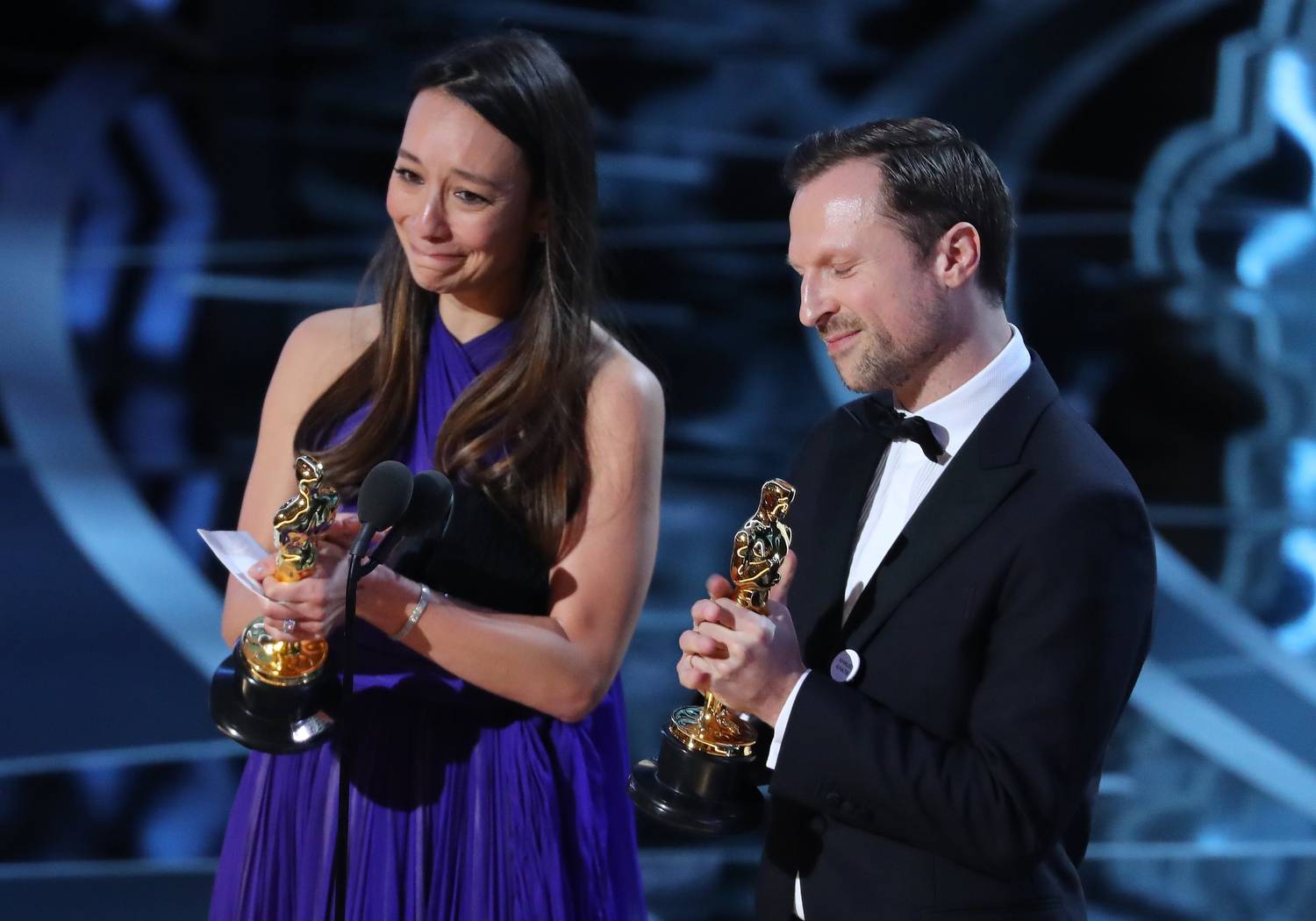 Orlando von Einsiedel and Joanna Natasegara win the Oscar for Best Documentary Short Subject, The White Helmets.Lucy Nicholson/Reuters
