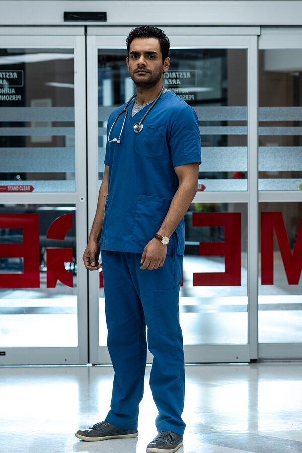 As an actor, he’s most interested in storytelling that goes beyond the facade, where fiction is based on a dose of reality. In Transplant, Haq plays Bashir “Bash” Hamed, a Syrian doctor with experience working in a war zone, now trying to make a new life for himself and his young sister in Canada. Although he starts off as an immigrant working in a Lebanese restaurant, circumstances soon see him get a residency in the ER at Toronto’s fictional York Memorial Hospital.