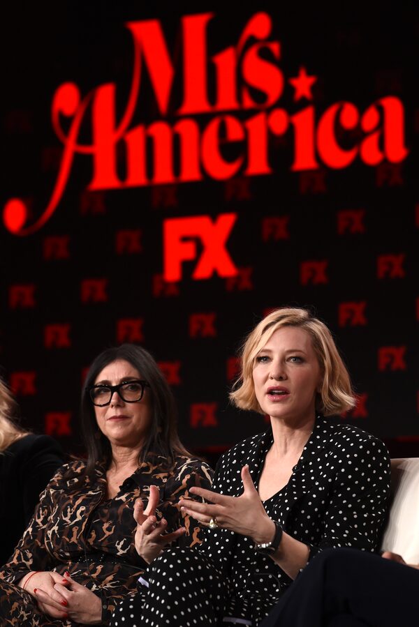Cate Blanchett, right, a cast member and executive producer of the FX on Hulu limited series 'Mrs. America,' discusses the show as executive producer Stacey Sher looks on, at the 2020 FX Networks Television Critics Association Winter Press Tour on Jan. 9, 2020, in Pasadena, Calif.Chris Pizzello/The Associated Press
