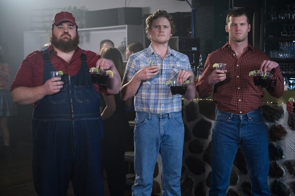 K. Trevor Wilson, Nathan Dales and Jared Keeso in Letterkenny. Season 11 streams on Crave from Dec. 25.AMANDA MATLOVICH/Bell Media via The Canadian Press