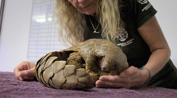 Nicci White treating a pangolin in South Africa.James Boon/BBC / Courtesy of PBS