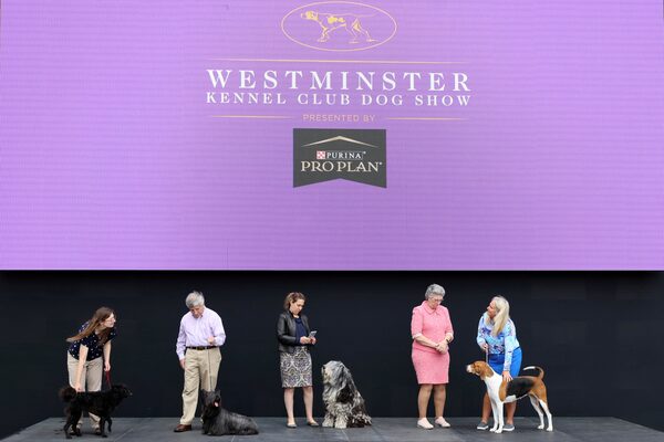 Owners and dogs attend the Westminster Kennel Club Dog Show Press Preview at Hudson Yards in New York City, on June 16.BRENDAN MCDERMID/Reuters