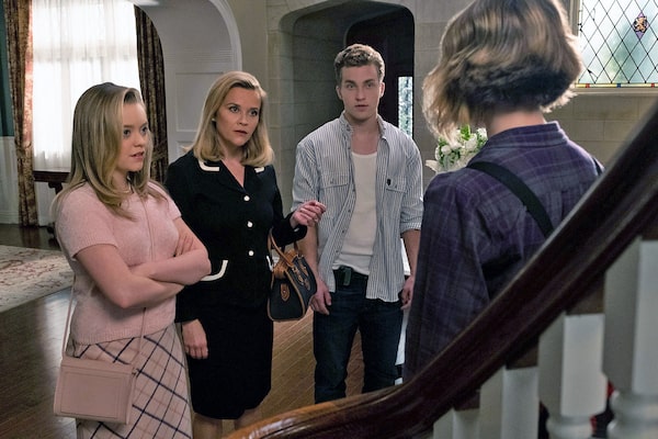 Jade Pettyjohn as Lexie Richardson, Reese Witherspoon as Elena Richardson, Jordan Elsass as Trip Richardson, and Megan Stott as Izzy Richardson in the TV series Little Fires Everywhere.Courtesy of Amazon Prime Video