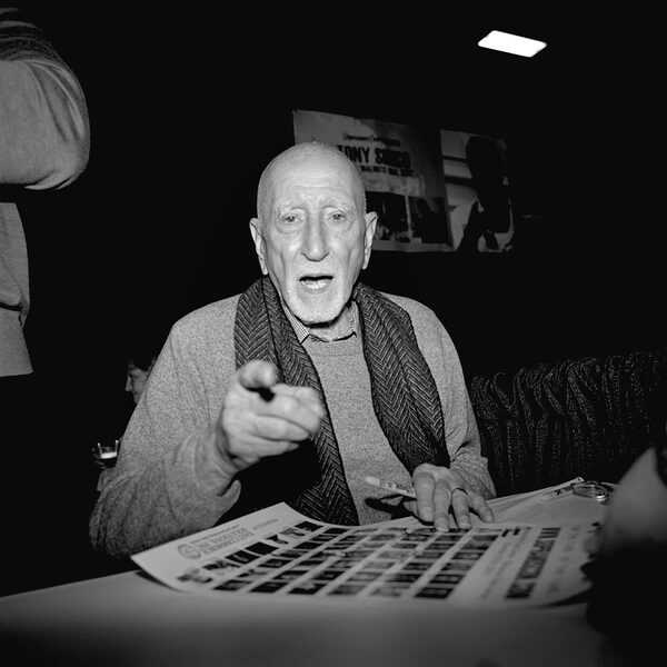 Dominic Chianese (Junior Soprano) notices a camera while signing autographs.