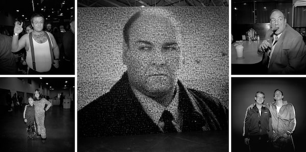 A giant mosaic of actor James Gandolfini, made of pictures of his signature character Tony Soprano, kept watch over SopranosCon in Secaucus, N.J., earlier this month. The event attracted die-hards like Steve Katrensky, top left, who came dressed as Tony Soprano; Olivia Fama, 8, and her brother Joseph, 5, bottom left, dressed as Adriana La Cerva and Paulie Gualtieri; Tony Soprano double Don Metzger, top right; and fans Michael Conway and Ryan Sigmann, bottom right.Fred Lum/Photography by Fred Lum/The Globe and Mail
